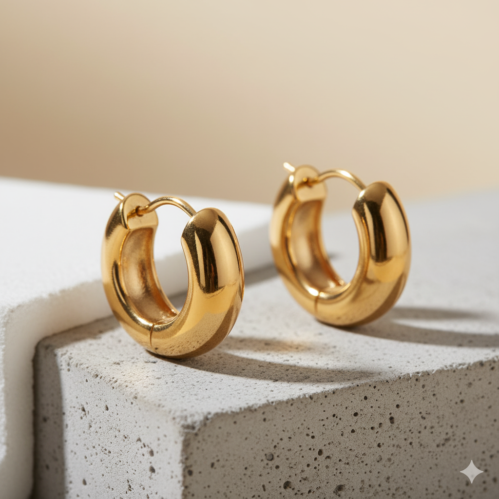 Elegant lightweight hoops in long-lasting gold-finish stainless steel. Hypoallergenic and tarnish-resistant.
